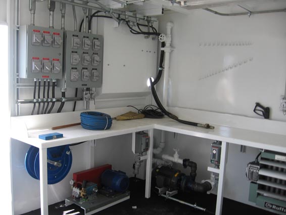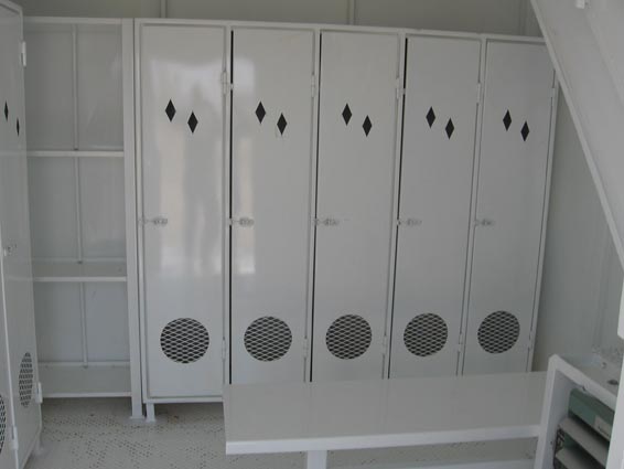 | We can custom build this unit with a tool room and change room in it, or just a tool room or compressor room. The doghouse is built with a hydraulic winch drive, to lift itself out of the tank. The doghouse also comes with a knowledge box, junk box, 3 lockers, a cabinet, a bench and a bench top. |